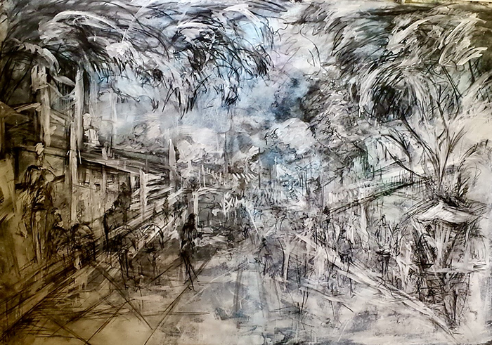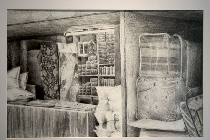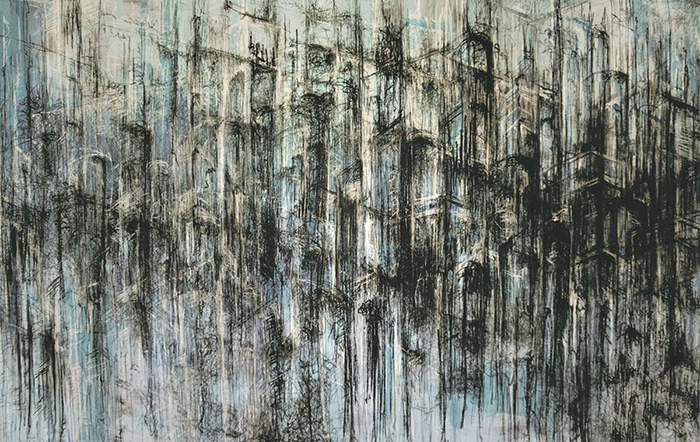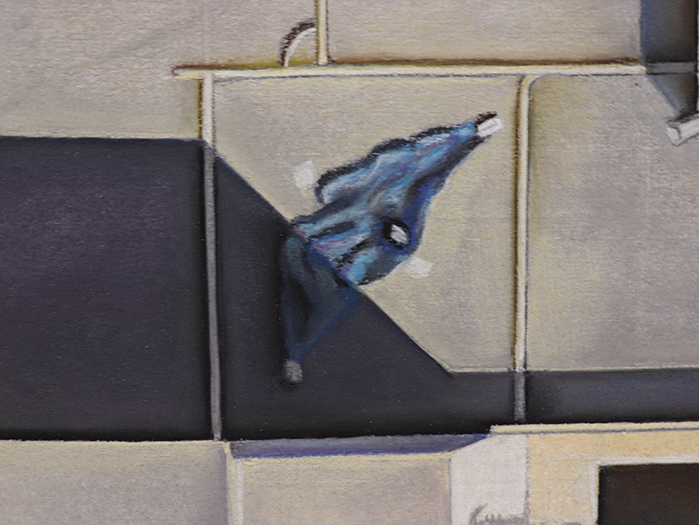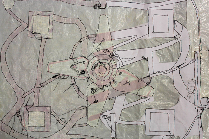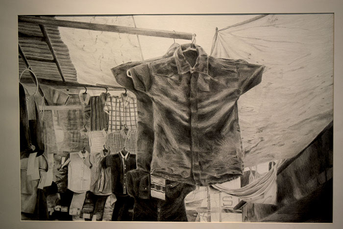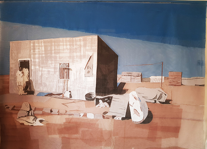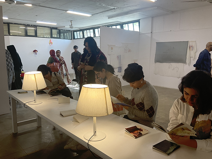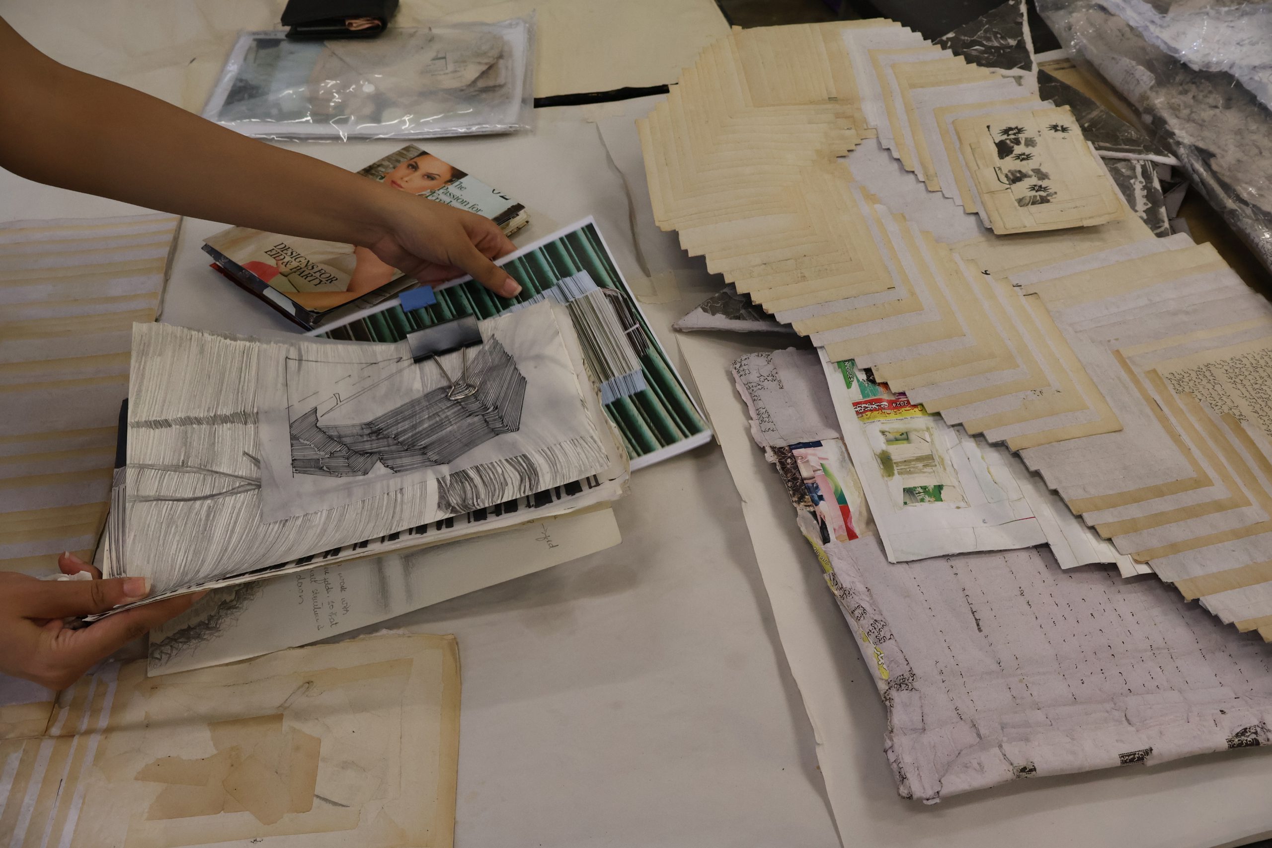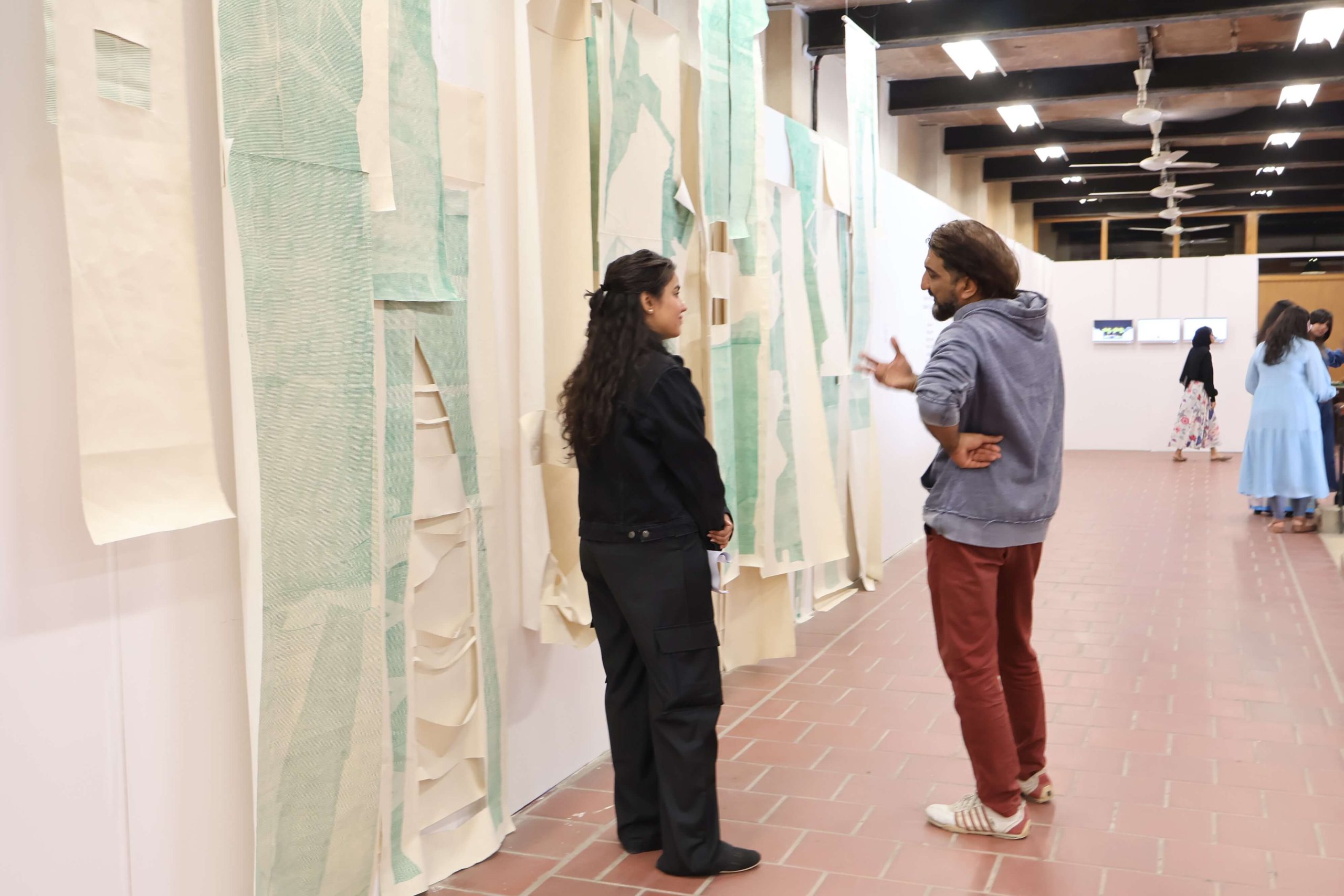 For some, there seems to be a certain senselessness in trying to categorise and label Karachi. Hence, in many of the projects in ‘Intersections’, we see how young artists, mentored and guided by faculty at the university, capture these critical moments where design, movement, and public life converge creating visuals and stories which do not speak of one concept. From the towering apartment complexes across Gulshan, DHA and Clifton, to the nine-to-five rigmarole of offices, schools and daily wagers—Karachi has a way of engulfing its residents. The artworks draw inspiration from this immersion and manage to freeze time, and counteract the senseless concrete development around them during their studio investigations and site based research. Whether these methods include collaborating with technicians in the markets of Saddar or documenting historical records and maps at the Sindh Archives or refining their sense of palette and composition within the studio, the approach is multidisciplinary. Posing questions, feeling through textures, and layering stories, the students behind the work are indeed from diverse backgrounds, yet they all underline a concern for the city and its fading history.