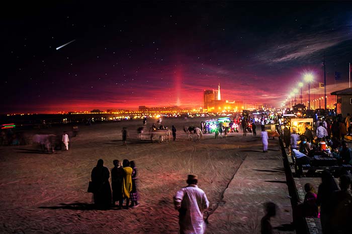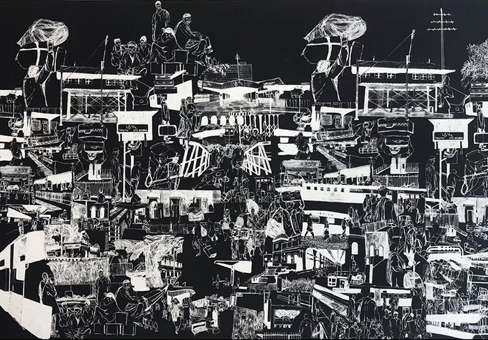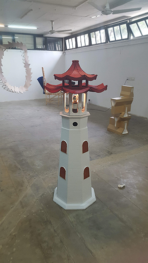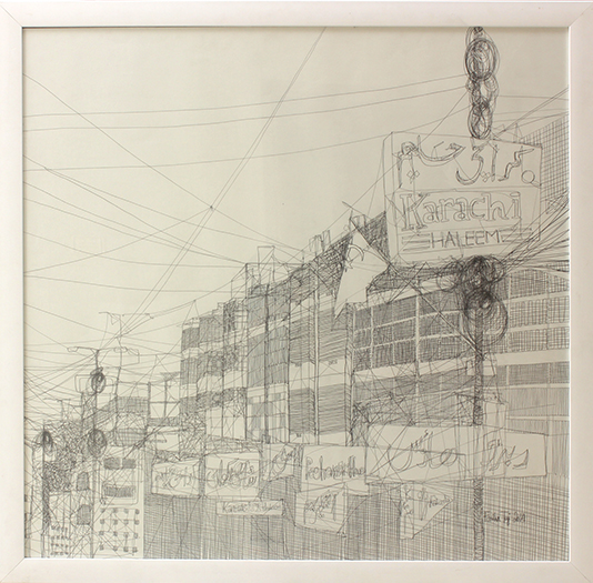 The complexity of Karachi is its most recognisable asset, yet it is the very reason behind the city’s many splits and bifurcations. Being a major deep sea water port in South Asia, Karachi has been an entry and exit point for all types of cargo and human existence in the region; nothing is irreplaceable and no commodity is a rarity. Business comes first here, resulting in the city’s creative practitioners being inherently drawn towards uncovering ways in which the motives of commerce and profit can overlap with valuing cultural inheritance. Using mediums ranging from mechanical objects to recyclable packaging, to model-building and photography, art students have sought to depict urban landscapes amidst conversations on how artistic research can further our understanding and appreciation of the city.