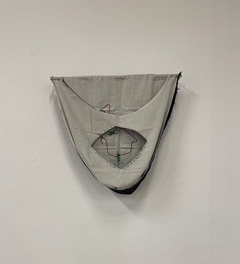 In Karachi, peripheral regions do not just include the outskirts, but also informal settlements, densely populated neighbourhoods, and regions that experience infrastructural neglect. Despite all its flaws, this city is a magnet for economic opportunities, drawing populations from Sindh, Balochistan, Punjab, Khyber Pakhtunkhwa and the Northern Territories. The periphery which encloses Karachi is then, not just a rural or non-urban space—it is a relational area shaped by both opportunity and separation from the dominant urban centres. Here, we see a particular interest across the artworks bringing topography and landscape to the forefront; the undulating sandhills dotted with tamarisk, grassy farmlands, or the rocky pathways on the outskirts of Karachi, are physical features, in sharp contrast to the visuals of the city. Living within traffic-choked roads and little space, can at times push the artist to escape this city and revisit previous and ancestral lands.